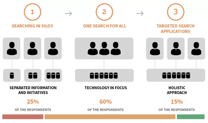 The respondents' answers and the statistics collected fit quite well with Findwise's research entitled "Findability Report."Findability Report." This report focuses on the maturity of search systems and the ease of finding information in enterprises. Among the many implementations, products and applications, it is search engines that ideally fulfill the above requirements: increased employee efficiency, access to data, or self-service (self-service) in the area of discovering corporate knowledge. Findwise's annual survey shows that for 60% of the surveyed companies, the ability to find the right information is extremely important, and 42% of them intend to increase their existing spending in this area. What's more, there is a growing number of organizations (40% in 2015, compared to 20% in 2012) that have created their own strategies for developing search platforms.